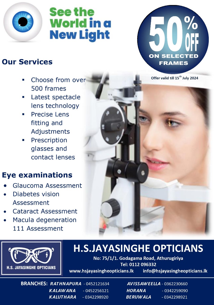 At H.S.Jayasinghe Opticians, we seek not only to be a leader in our industry, but also to create a better future for our customers, employees, community and environment through our efforts.